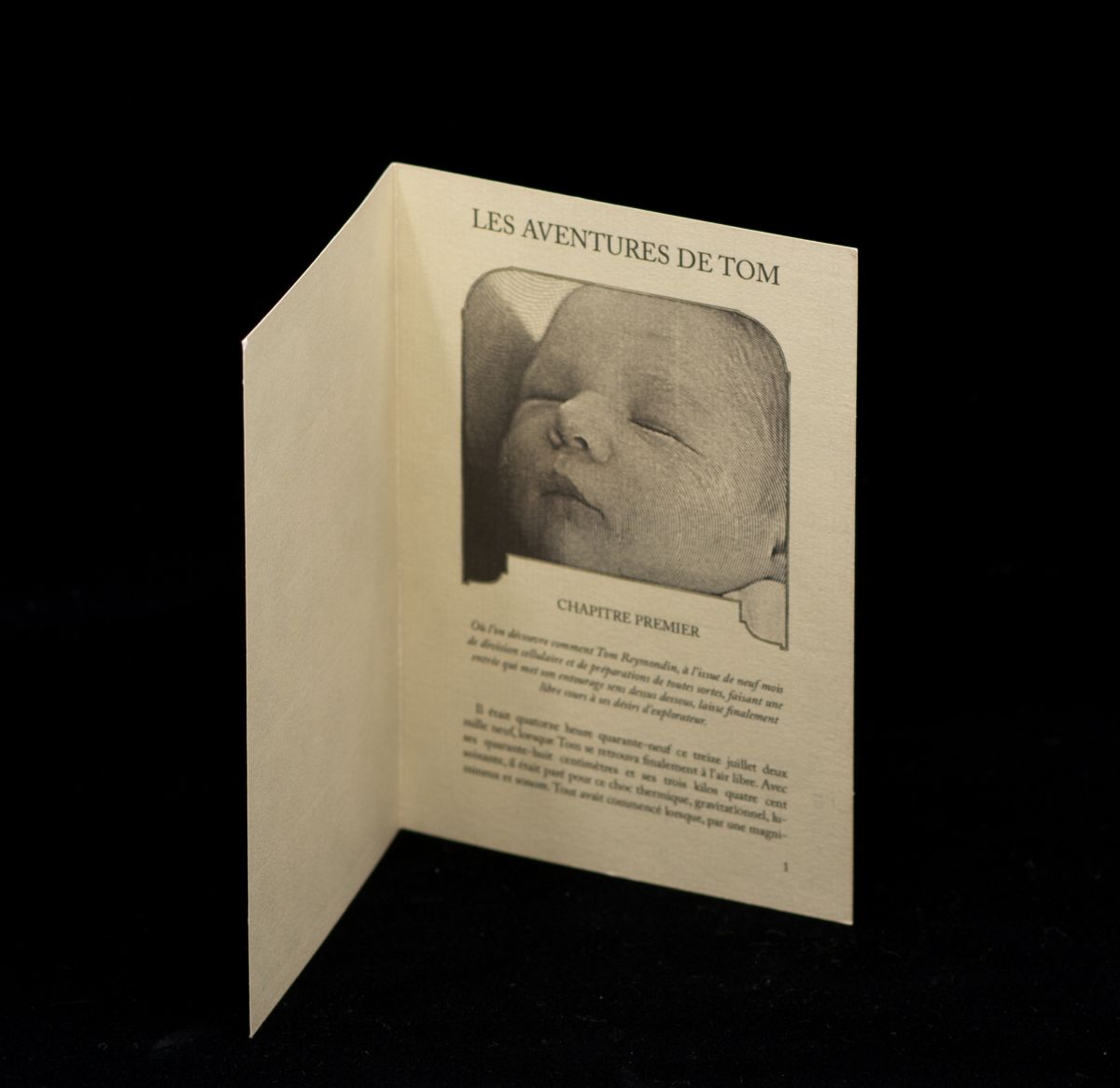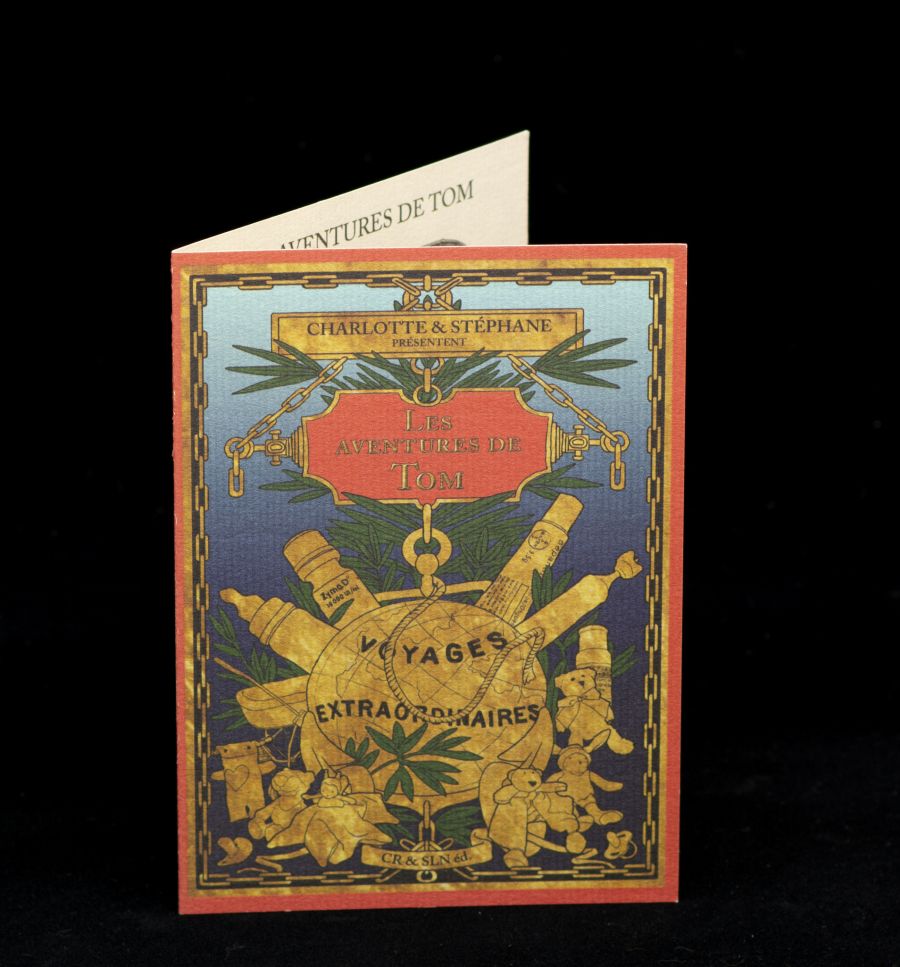 Le prénom, Tom, a quelque chose qui m'évoquera toujours la littérature d'aventure, la faute à Tom Sawyer sans doute. Pour le faire-part de naissance de notre premier enfant nous avions envie d'évoquer à la fois cette idée d'un nouveau voyage et le monde des livres. Et quoi de mieux pour cela que de se référer à Jules Verne.